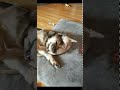 He has a foster sister and a little puppy foster brother: and Leo absolutely adores both of them!!! I really think he will continue to thrive if he has a dog friend in the house hold. I think having another dog will help him with his continued recovery and he's just that type of dog that needs a dog friend. He also loves to hang out and run around in the yard. Leo has proven to us that he is trustworthy and we have been letting him stay out of the crate while we are gone during the day and he is handling it like a champ! He likes to carry around toys and during downtime hes just layes around in the floor on the dog bed (as you can see in the pics). Oh and Leo loves any type of box... cereal boxes, ziploc boxes, anything of the sort... they all make him SO happy.
