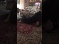 Walking on the leash, she will pull a little bit, she needs help, she needs somebody that can handle two dogs at the same time and that as experienced and knows what to do when passing other strange dogs. Because she and Fire are both so low energy, they don’t need long walks or hiking or running, they just need a small backyard to go outside and play a little bit and come back inside. This is what they really, really love a lot: a comfortable bed and being close to their people. She’s all love. She in not a fan of the crate, but I don’t think she needs that. During the day she stays out and she sleeps. At night she stays inside, she needs a good treat to go inside, but after she stays quiet all night. She doesn’t ask for food while we are on the table, she lays down behind one person’s chair she doesn’t jump on the counter. Both Brimstone and Fire don’t know how to play with toys. They have a few around the house but they ignore toys completely. The same way they don’t care for toys they don’t care about messing with pieces of the house like shoes, clothes, or socks. They are so good inside. This two amazing dogs they deserve a loving family with a little bit of owner experience, especially if they want the dogs outside of the property to socialize with other dogs. For a family that doesn’t want this “going going all the time”, they just need to show them love and patience (specially for Fire).