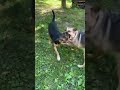 When it comes to other dogs Apple is very dog selective. It is not that she can't be around other dogs, she was housed with her pal Titan for several weeks before we got her and she had to get close enough to another dog to be able to have puppies in her previous life. for some dogs introductions are long and slow and at this point some dogs are an absolute "no go". We are currently working with her on muzzle training and with dog introductions, she has made excellent but slow progress. she will need continued professional training post adoption.